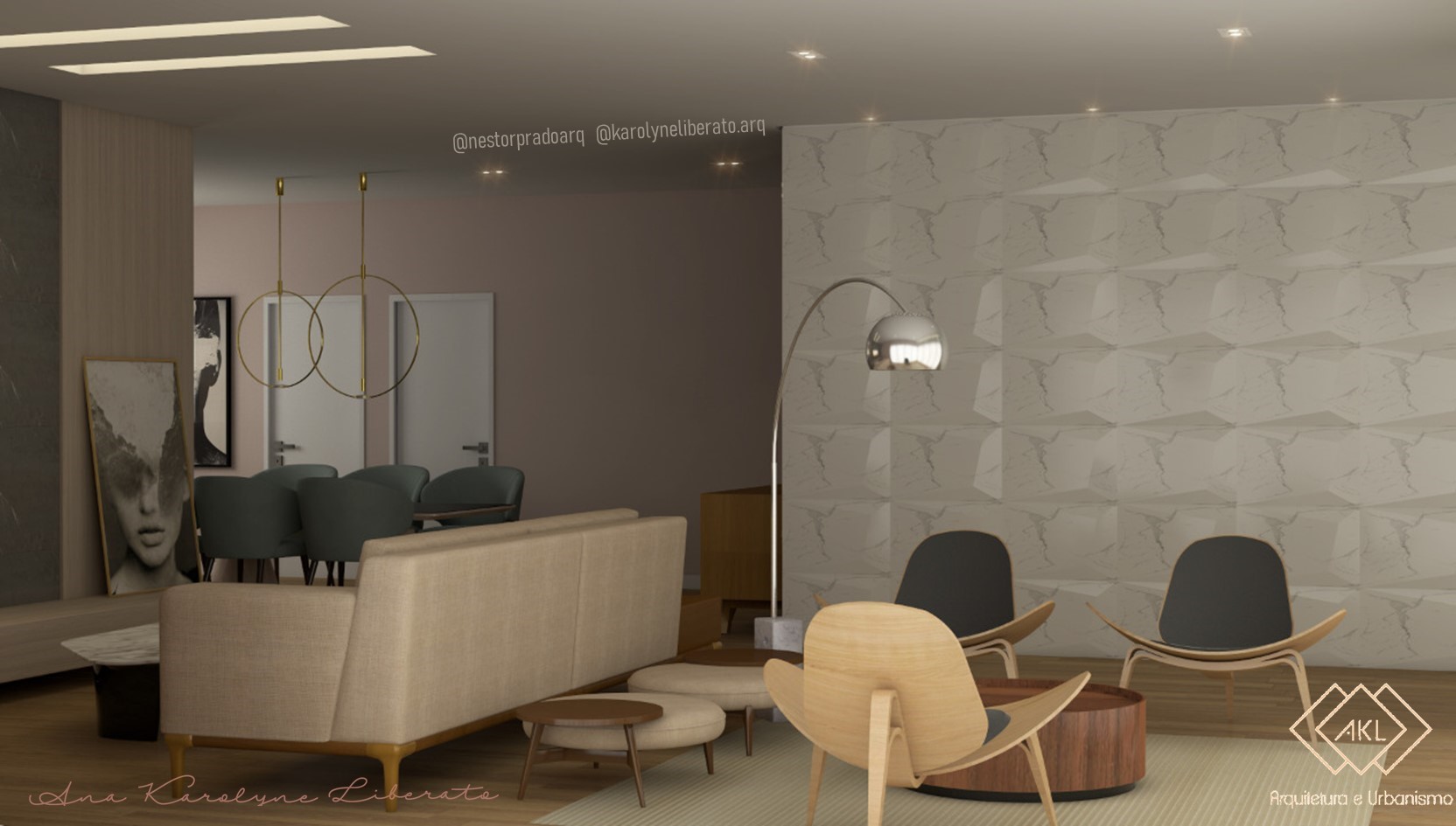 familiares em casa, por isso nos pediram uma ampla sala de estar/living, e, como um deles
