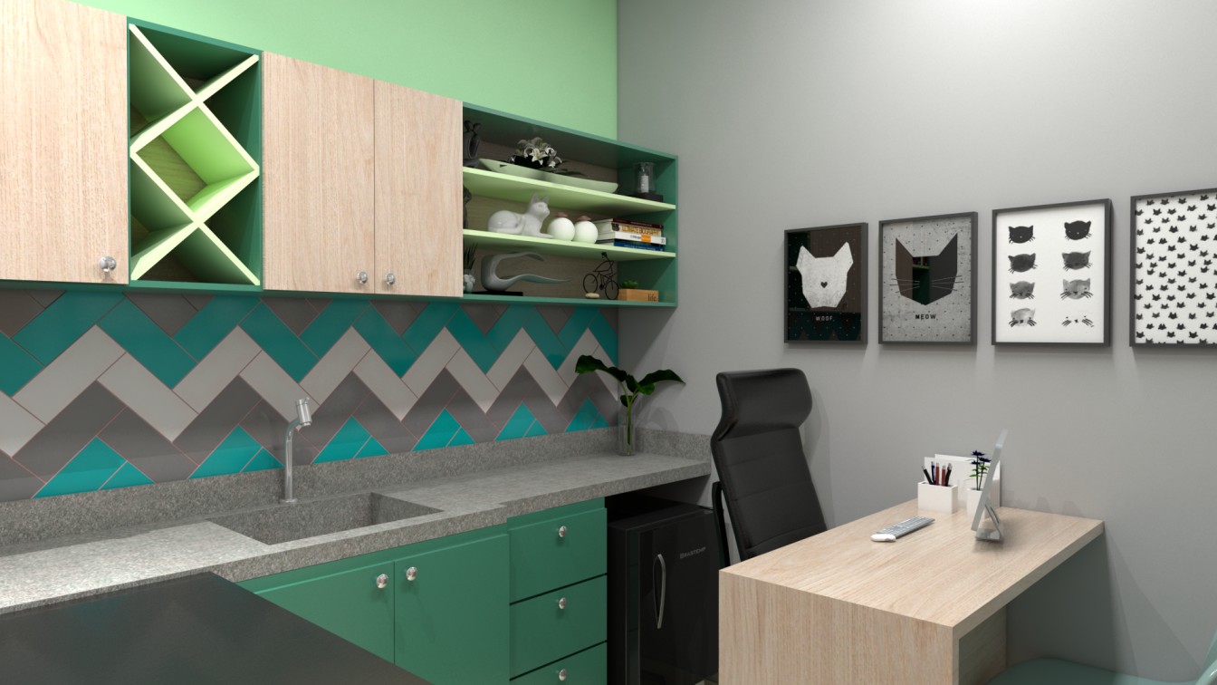 desafio. O proprietário nos pediu que fosse um ambiente alegre, colorido, convidativo,