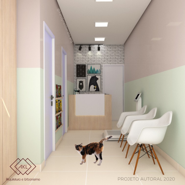 observação, consultório veterinário e recepção. O casal nos pediu um projeto no estilo